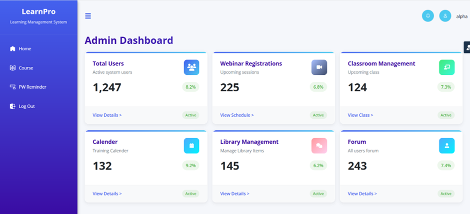 - Course Management: Enables administrators to create, update, and manage training programs efficiently.
