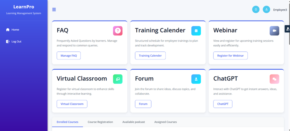 - Employee Registration: Allows employees to easily browse and register for courses based on their roles, interests, or skill requirements.